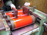 -urushiTransparent urushi of amber color.Applied under the metallic leaves such as gold leaf. Jo-tame-urushi Transparent urushi of medium gloss deep amber color. MR (roll mill) suki-sugurome Quickly solidifiable glossy urushi. Tighten after solidified. Highly weather resistant. Kuro-urushi (Black lacquer) Hon-roiro(Kuro-roiro) Polish up by roiro process. Urushi that solidify tightly. Kuro-naka-urushi Urushi to apply under the black overcoat. Jo-hon-kuro(Nuritate-kuro) Glossy jet-black urushi that can be finished without any additional overcoat. Hakushita-urushi Black urushi applied under the metallic leafs such as gold leaf. Shin-nuri Jet-black urushi with medium gloss. MR (roll mill) kuro-sugurome Quickly solidifiable glossy urushi. Tighten after solidified. Highly weather resistant. Iro-urushi (Colored lacquer) Neri-shu (cinnabar paste)